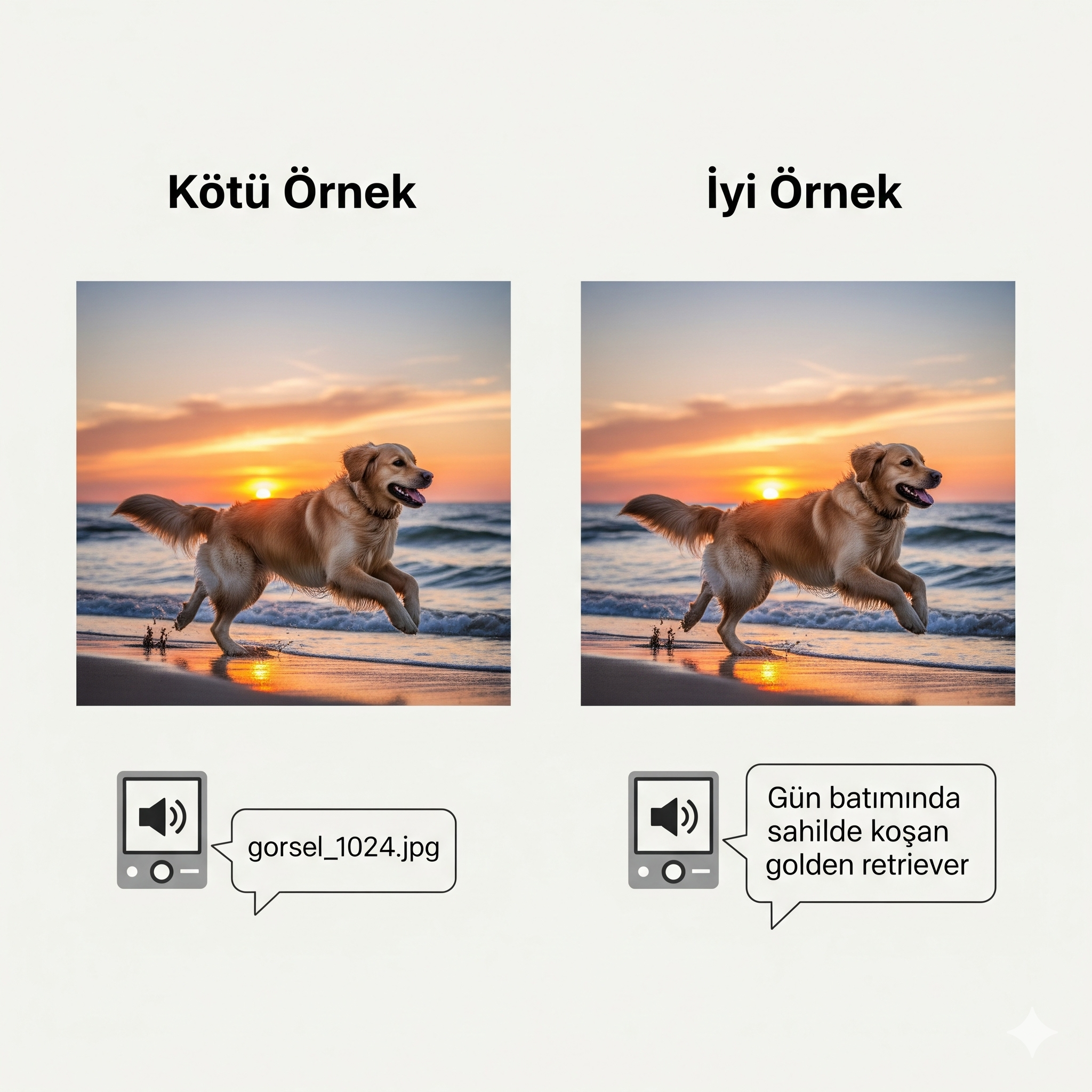 bırakır. "gorsel_123.jpg" gibi anlamsız bir alt metin hiçbir bilgi