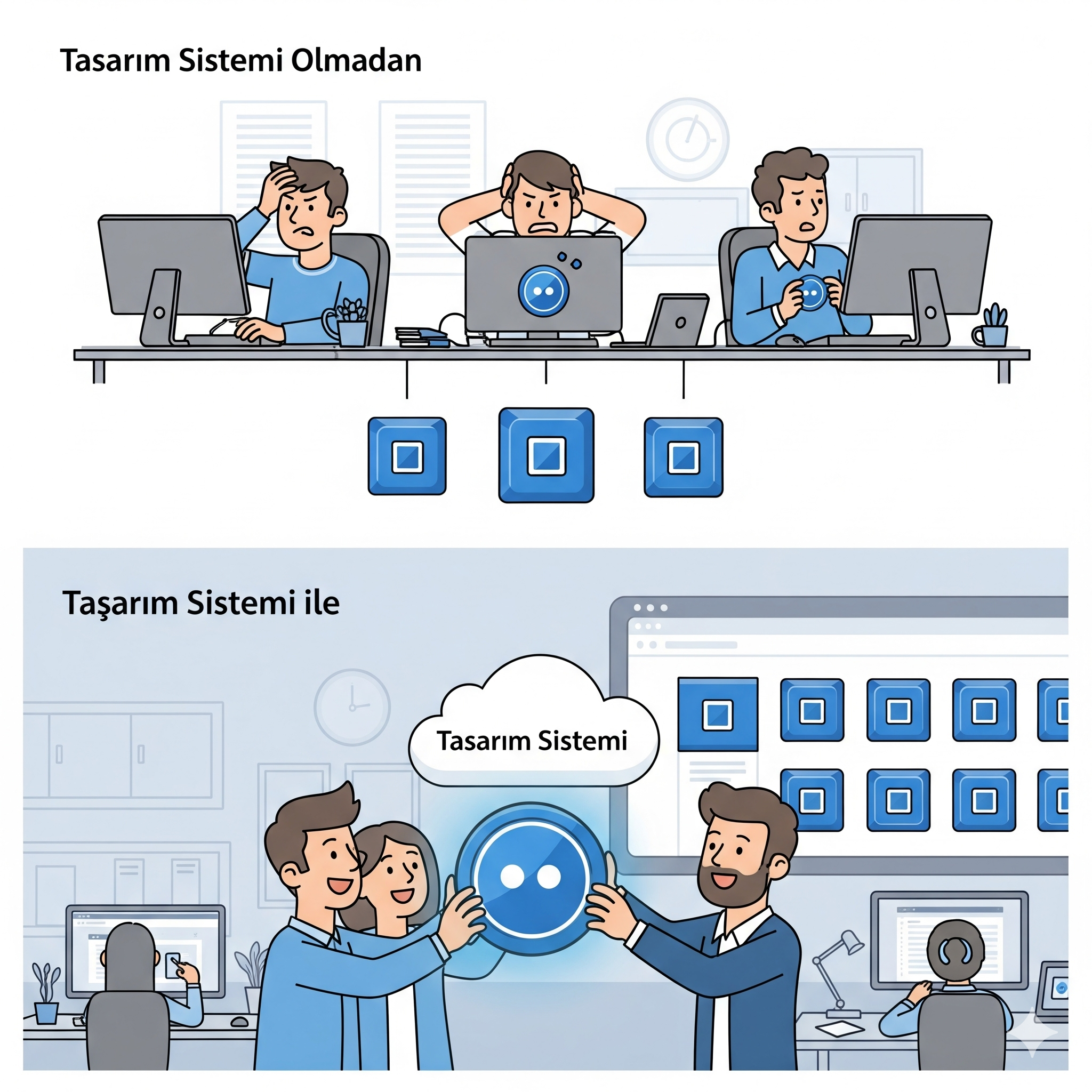 Tasarım sistemi ile birlikte, bu gereksiz tekrar ortadan kalkar.